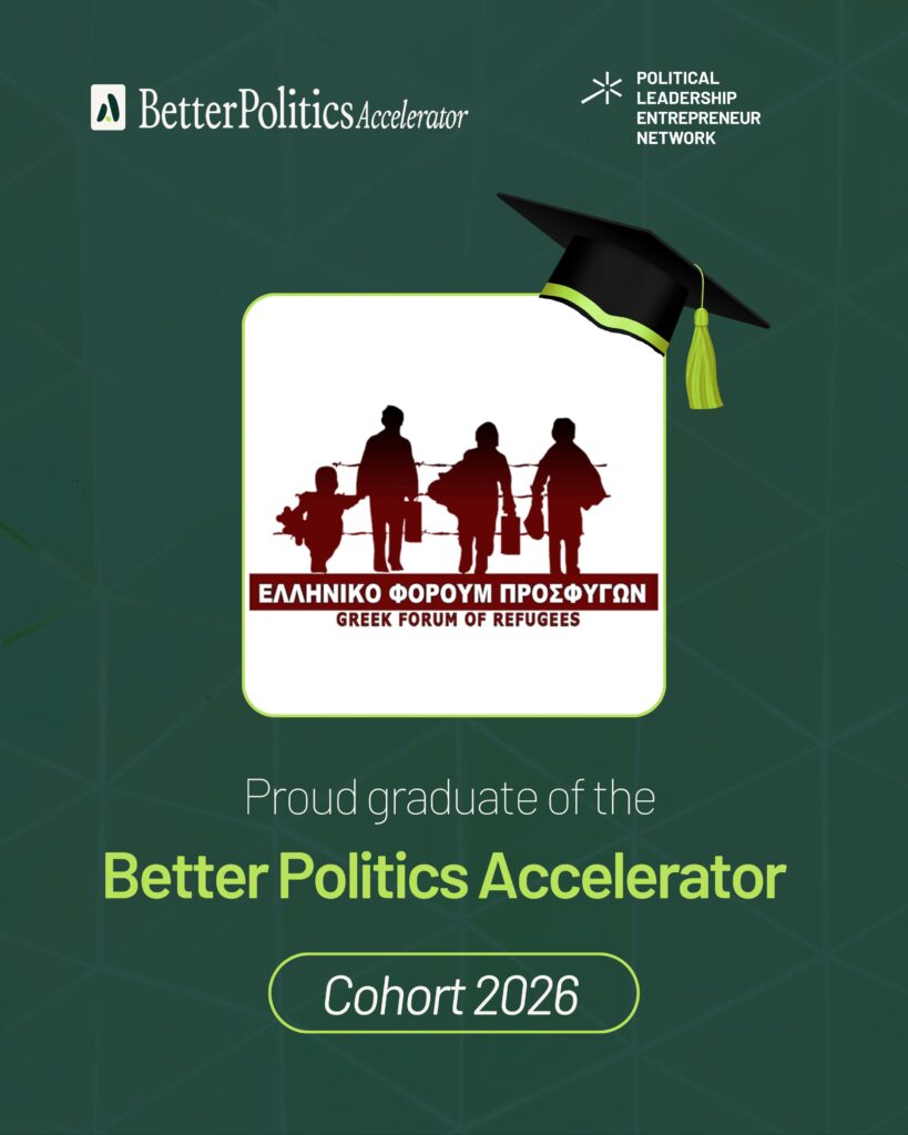 H πρωτοβουλία Democracy4All του Ελληνικού Φόρουμ Προσφύγων (ΕΦΠ), ολοκλήρωσε με επιτυχία το πρόγραμμα Better Politics Accelerator 2026, ένα διεθνές εξάμηνο πρόγραμμα που υποστηρίζει οργανώσεις οι οποίες εργάζονται για την ενίσχυση της πολιτικής ηγεσίας και της ουσιαστικής δημοκρατικής συμμετοχής.